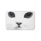 A black and white kitty cat eyes and face features design makes this a one of a kind bath mat.