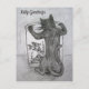 Word on note card note "Kitty Greetings" but can be changed to make your own custom greeting card message. Art features a pencil sketch of a black cat leaning over a goldfish bowl. Make your own custom cat lover gifts with personalised messages!