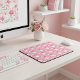 The product itself is good quality and I like the simplistic elegant design. The only criticism I have is that it's not really accurately represented by the picture provided. I thought that the mousepad would be a non-porous or laminate surface and as such the gold writing would actually shine against the soft pink. However the design is printed on a thick fabric surface, so the gold colour is just the shade of gold but doesn't stand out from the pink background. (See picture)