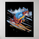 Kitty skiing down a snowy slope funny poster