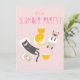 An adorable, customisable invitation for a sleepover party, picturing 3 kittens with pillows, popcorn and magazines.