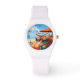 Watch featuring a colourful painting of a kitty snoozing on the beach.