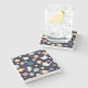 The coasters are gorgeous, a quality feel and heavy weight. They look like a precious archeological find. A rustic stone juxtaposed with a modern floral black and white print. I like the way the print goes slightly imperfect on the cut stone edges giving them a kind-of natural beauty.