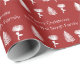 Christmas wrapping paper NZ Kiwi Christmas theme. On a Christmas dark crimson red colour are a NZ fern frond and the pohutukawa flower alternating. The pohutukawa flower is recognised throughout Aotearoa NZ and the oohutukawa tree is commonly called the New Zealand Christmas Tree as it's red flowers bloom in summer around Christmas time in December. There is custom text for you to amend and add your own. It has the seasons greeting of Merry Christmas, which could be amended to Happy Holidays or Meri Kirihimete (NZ Māori langauge Xmas greeting) as well as space to further personalise wrapping paper by adding your own custom text, such as in this instance a family name.