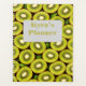 Brighten your planning routine with this fresh and vibrant kiwi fruit planner cover. Featuring a dense pattern of juicy green kiwi slices, this design adds a fun, refreshing, and modern aesthetic to your daily organization. Perfect for fruit lovers, summer vibes, and anyone who enjoys bold, colorful stationery.