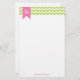 Kiwi Green Chevrons Pattern and Pink Monogram Stationery