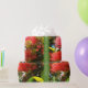 Christmas wrapping paper with a continuous pattern featuring a beautiful celebratory NZ Xmas tree, the Pohutukawa, it's red flowers blooming in the Kiwi summer. There is custom text to put in a holiday greeting that you prefer, in white text against a pretty green,