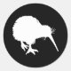 Black and white silhouette shapes of the New Zealand kiwi bird.