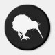 Black and white silhouette shapes of the New Zealand kiwi bird.