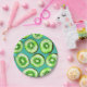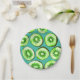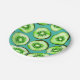Kiwi slices on turquoise paper plate