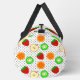 I actually had been searching other sites for a duffle gym bag and I couldn't find any. This one is just what I was looking for with all the features. The inside zip pocket, the outside mesh pocket and LOTS of room inside. Love the printing. Really like how the floral print turned out.