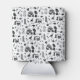 A black and white pattern with images from a classic New Zealand / Aotearoa summer holiday. A pattern for caravan camping at the beach.