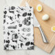 A black and white pattern with images from a classic New Zealand / Aotearoa summer holiday.This design has NZ native birds, pohutukawa and kowhai flowers and other items that make a classic kiwi summer.