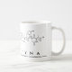 Klementyna spelled out in amino acids as K L E M E N T Y N A (Lysine Leucine Glutamic acid Methionine Glutamic acid Asparagine Threonine Tyrosine Asparagine Alanine) on a mug for the scientist in you.
