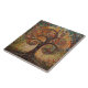 This stunning ceramic tile showcases an abstract Tree of Life inspired by Gustav Klimt's "golden phase." Klimt was fascinated by Byzantine mosaics and developed his own mosaic technique using gold leaf and bright colours. This artwork pays tribute to Klimt's innovative approach to mosaic and captures the opulent beauty of his style. Bring a touch of sophistication to your home decor with this exquisite tile.