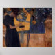 Klimt's magical use of black and gold is evident in this Romantic composition of a very young, fragile girl playing a hand-held, ancient-looking harp. It is a starker work than many of Klimt's more famous works (The Kiss comes to mind) that have that layered profusion of golds and colors, and its classical overtones but uncentered subject make this piece especially charming and curiously Modernist. Excellent reproduction of Klimt's beautiful harp-playing girl. The metallic quality of the harp and the richness of the blue was not lost in this extremely affordable poster.