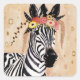 Klimt Zebra | Crown Of Flowers Square Sticker