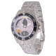Has heft and feel of expensive stainless steel quartz watches. Good band with safety catch. I removed links, which is easy because engraved arrows show direction to push the linking pins. As always by this seller, the image (a railroad logo) is a perfect reproduction of my emailed image, and is precisely spaced and aligned.
