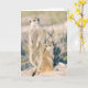 The FKMP greeting card featuring Busta babysitting Nugget, both meerkats in the Whiskers family. Photographer: Rob Suthcliffe, Kalahari Meerkat Project. Date: January 2008.