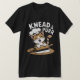 Design showcasing a cute, cartoon-style cat in a chef’s hat, happily kneading dough with its paws. The phrase "Knead & Purr" appears in clean, dynamic block letters above the image. A perfect design for cat-loving bakers who enjoy the art of bread making. Printed on a solid black background for a bold and stylish look.