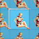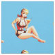 Vintage Pinup Blonde Bikini Model kneeling at the edge of the sand as waves splash her, to customise