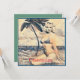 Vintage Pinup Blonde Bikini Model kneeling at the edge of the sand as waves splash her, to customise