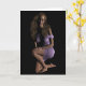 kneeling beautiful female wearing a purple dress with low key lighting greeting card