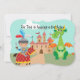 Cute birthday invitation for a little boy. Front has a smiling dragon, castle, and a knight. Customisable text on front and back. . A coordinating set of paper plates and invitations available.Another version for girls is available also