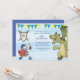 This invitation features a dragon and knight on a blue and white background. The knight is holding a sword and a shield while a dragon is growling at the knight. The perfect invitation for a kids who love mediaeval times.