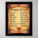 Linda Baysinger Peck's painting of a scroll, with text of the knightly virtues, which includes Faith, Hope, Charity, Truth, Justice, Temperance, Prudence, Loyalty, Courage, Humility, Fortitude, Courtesy, Honour and Nobility. Great for those who enjoy chivalry and the knight's code of conduct.