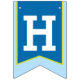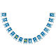 Knights mediaeval shield themed blue and green Happy birthday 5th flag party bunting. Personalise with your child's birthday year. Currently reads Happy 5th Birthday. Matches other items in the Knights mediaeval shield collection. Features a regal shield in blue, green and grey design with a bears head and crown. Other matching items available. All original art and design by Sarah Trett. www.sarahtrett.com for www.mylittleeden.com
