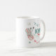 This yarn addicts coffee mug carries the funny pun "knit happens", popular with knitters and crafters. The design features a multi-coloured self-striping ball of yarn with knitting needles and some wiggly yarn tails. The fun saying is written in hand-lettered, brushed typography. It has a gentle colour palette of Teal Blue, Muted Red, Oatmeal Grey and Seaglass Green. Please browse our store for matching and co-ordinating products.