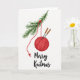 🎅🏼✨ This delightful Christmas greeting card features a charming illustration of handmade holiday cheer. A vibrant crimson ball of yarn hangs as a festive ornament, with a lush pine branch serving as its backdrop. Two knitting needles peek out from the ball of yarn, adding to the cozy, crafty vibe. The elegant phrase "Merry Knitmas" in flowing black script ties the design together, perfect for spreading holiday cheer with a touch of whimsy. 🎄🎁 Embrace the joy of the season with this heartwarming card, a perfect choice for anyone who loves the warmth of handmade gifts and creative crafting. 🧶💕