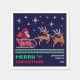 Knitted Santa Sleigh on Navy Blue Merry Christmas Napkin