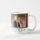 Knitting Green Red Christmas Family Photo Collage Coffee Mug. Christmas mug in holiday red and green knitting look with a text Merry Christmas. Add 2 of your favourite photos. Personalise with your family name and year. Make a unique Christmas gift and a sweet keepsake for your family.