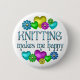 Share your love for knitting and the happiness it gives you with this colourful design with hearts, flowers and the words - Knitting makes me happy.
