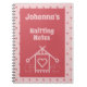 Knitting notes pink hearts and sheep - A lovely way to keep all your knitting notes in one cute notebook. Decorated with sheep, knitting needles and knitted hearts in tones of pinks. Customise the name and the text to your needs. Change the font and the colour if you like as well. Keep one notebook for yourself and one for your knitting friends. They will love the customised touch.