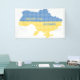 Textured Ukrainian geographical map made of knitting texture and words Glory to Ukraine in Ukrainian flag colours