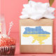 Textured Ukrainian geographical map made of knitting texture and words Glory to Ukraine in Ukrainian flag colours