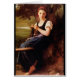 Untitled (Knitting Woman) by William-Adolphe Bouguereau, oil on canvas 1869, is a painting of a young woman in dark blue dress and white blouse sitting on a fence post beneath a large tree in a lush, country landscape. The subject gazes outward at the viewer as her hands work her knitting needles and yarn. The rich range of tone and colour, smoothly polished painting technique, and sentimentalised subject matter are exemplary of the academic classical realism of the late 19th century.