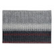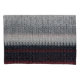 Black and grey knit wool, with red and white stripes, offers cosy texture.