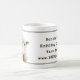 Coffee mug with templates for a logo and text. Made with a knitting and yarn shop theme, a cute sheep’s face holds the place for a logo (or use the image). Next to the image is bold printed text for a shop name, designer’s name, website, or other advertisement text. Create for customers, or for someone you know who runs a knitting related business.