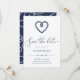 Our coastal chic summer wedding save the date cards feature classic nautical styling in navy and white. An open heart formed with knotted nautical rope appears at the top, with "save the date" beneath in modern script typography. Personalise with your save the date details in a chic combo of serif and sans serif lettering. Perfect for nautical, summer or beach themed weddings. Save the date cards reverse to a pattern of looping white rope on navy blue.