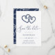Our coastal chic summer wedding save the date cards feature classic nautical styling in navy and white. A pair of entwined open hearts formed with knotted nautical rope appears at the top, with "save the date" beneath in modern script typography. Personalise with your save the date details in a chic combo of serif and sans serif lettering. Perfect for nautical, summer or beach themed weddings. Save the date cards reverse to a pattern of looping white rope on navy blue.
