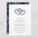 Romantic, coastal chic wedding invitations feature a classic navy blue and white colour palette, with two entwined hearts formed with knotted nautical rope. Personalise with your wedding day details beneath in a chic combo of serif and sans serif lettering. Perfect for nautical, summer, or beach weddings.