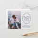 Announce your wedding to family and friends with these coastal chic save the date postcards in shades of navy and light blue. Design features your favourite engagement photo alongside a knotted nautical rope oval with "save the date" and your wedding details inside. A wavy blue striped background completes the look. Cards reverse to reveal additional details, your return address, and space for hand-addressing.