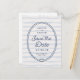 Announce your wedding to family and friends with these coastal chic save the date postcards in shades of navy and light blue. Design features a knotted nautical rope oval with "save the date" and your wedding details inside. A wavy blue striped background completes the look. Cards reverse reveal additional details, your return address, and space for hand-addressing.