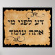 Calligraphy flourishing elements with the words Know Before Whom You Stand in Hebrew text, Da lifnei mi ata omed, דע לפני מי אתה עומד