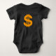 Baby jumpsuit with the words "Know My Worth" on the front in African colours, with a golden crown on the top. The back features a golden dollar sign.