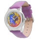 full colour custom printing on face. Your choice of strap colour - Black, Blue, Pink, Red and Purple, buckle closure. Water Resistance: Up to 3 ATM (98.4 ft) 1-year manufacturers limited warranty, battery included. Meets or exceeds all U.S. Government requirements and regulations for children's watches.
